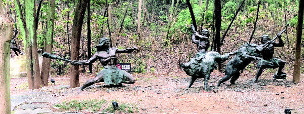 图③:甑皮岩遗址公园内,数处桂林先民的生活场景令人浮想联翩。图为狩猎场景之一。