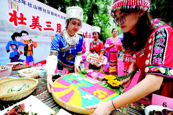 ▲近日,七星区五里店社区开展“中华民族一家亲 五彩运动伴我行”民族运动会,设有抛绣球、玩同心鼓、同心接力、同舟共济、投壶等民族趣味项目,喜迎“三月三”节日的到来,让居民群众体验民族体育的魅力和乐趣。 记者苏展/摄 通讯员秦燕华/文