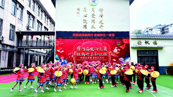 ▲“壮乡三月好晴天,紫荆盛开歌舞宣”,近日,桂林市桂漓小学学子们穿着少数民族服饰、跳着富有民族风情的舞蹈,参加“传承壮乡情,多彩三月三”主题活动。活动主要从识壮乡文化、赛壮乡精神、唱壮乡歌圩、享壮乡民俗、品壮乡美食等五个方面,体验了多彩的民族文化、传达了真挚的民族团结情谊。 (桂林市桂漓小学供图)
