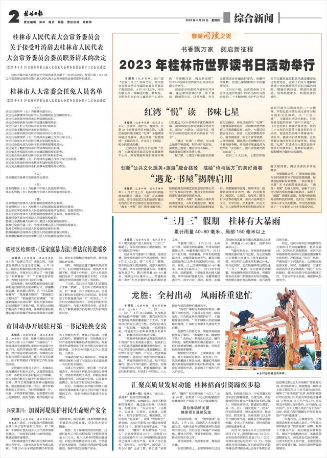 本报讯(记者陈娟)4月19日,桂林市第六届人大常委会举行第十二次会议,学习贯彻十四届全国人大一次会议精神,表决通过有关方案、规定和人事任免事项,决定任命郑平为桂林市副市长。