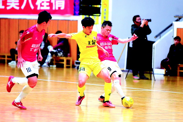 两球落后的佰燚天龍队略显急躁,开始组织猛攻试图扳平比分,但收效不大。反而国会广泰队利用队员体力好、88号杰克突破犀利等优势,多次中场拦截对手打反击,攻势一波接着一波,佰燚天龍队禁区前是“风声鹤唳”。到比赛第40分时,久攻不下的佰燚天龍队使出“绝招”,决定进行“殊死一搏”,由进攻队员换下守门员全阵压上进行狂攻。与此同时,场外球迷也齐声喊起“天龙加油”,为他们鼓劲。