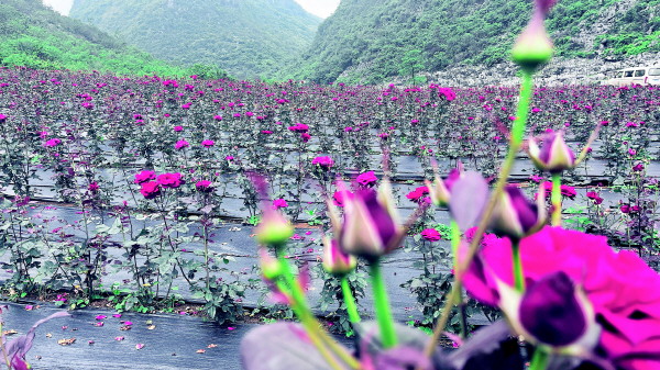 位于罗锦镇下村村源头屯的种植基地,一大片“日本真情玫瑰”正迎风盛开。