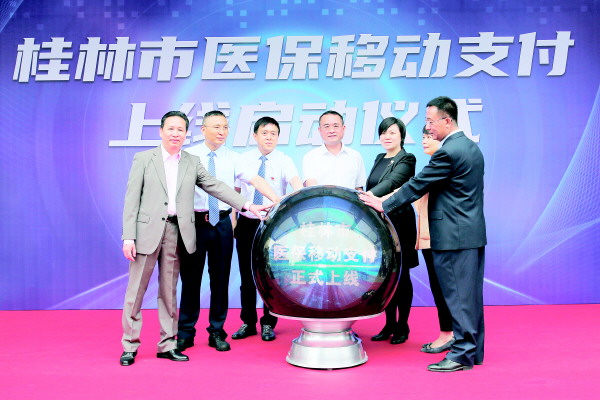 领导、嘉宾共同宣布桂林市医保移动支付上线启动。廖国梁 摄
