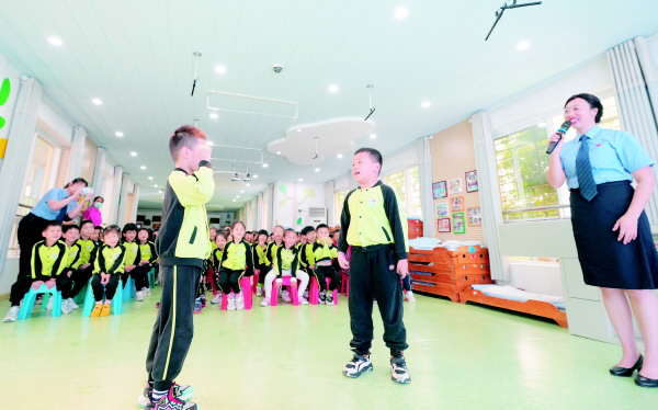 幼儿园大班的孩子即将升入小学,也将面对更加复杂的社会环境,学会如何保护自己对他们来说是一堂非常重要的一课。检察官们为此给孩子们做了详细的讲解以及有趣的互动,让孩子们懂得了自己的隐私部位不能让别人触碰,在遇到坏人侵犯时如何勇敢、机智地向周边的大人求助。图为检察官在情景互动中教导孩子们如何保护自己。记者何平江 摄