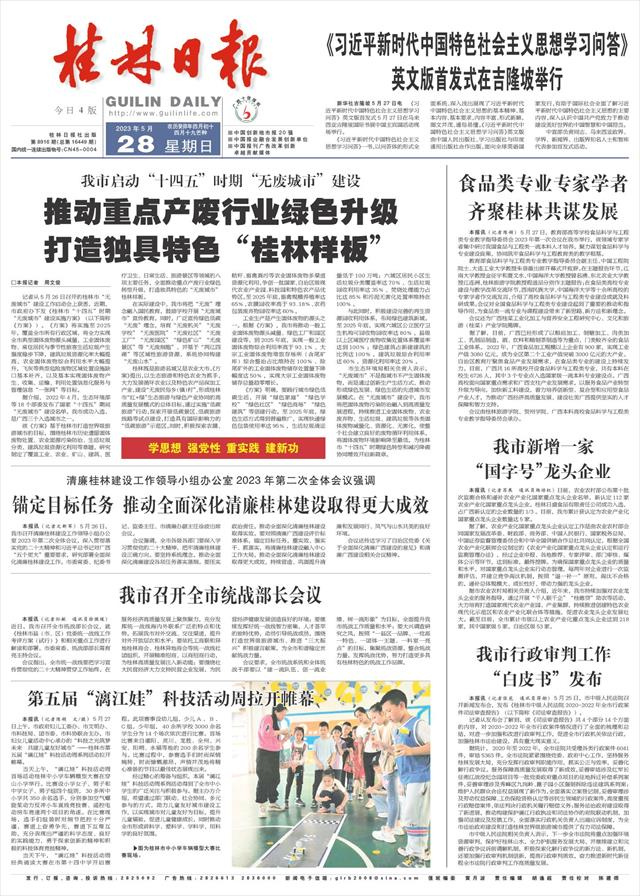 本报讯(记者周文俊)5月26日,我市召开会议正式启动“十四五”时期“无废城市”建设,要求各级各部门要以全新的绿色发展理念和城市管理模式,指导推进固体废物治理体系和治理能力现代化,提升城市精细化管理水平,践行绿色生产生活方式,实现绿色转型,为打造桂林世界级旅游城市提供有力支撑。