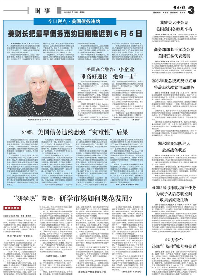 西班牙埃菲社和美国“Latinus”西班牙语新闻网站24日发布的报道均指出,美国或将在今年6月出现历史上首次债务违约,一旦发生这种局面,将破坏美国在后疫情时代的经济复苏,并使国际市场陷入混乱。