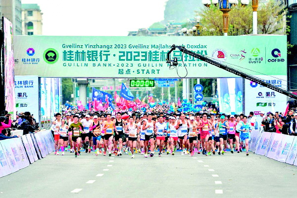 就在2023桂林马拉松开跑前夕,一位桂林本地的旅游从业者在个人社交媒体上告诉近期想来桂林的广大游客,桂林本地酒店的房间已经基本订满,到桂林之前务必先确定住宿。据赛事组委会介绍,本届赛事有来自全球11个国家和地区的3万名选手参加,在当天全国各地举行的28场马拉松赛中,“桂马”参赛人数与成都双遗马拉松人数并列第一。