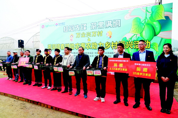 今年3月16日,“桂冠先锋 茶果满垌”万企兴万村之茶洞镇春耕助农惠农助力乡村振兴活动隆重举行。桂林银行给予茶洞镇整镇授信1亿元,为全镇产业发展提供融资支持,助力该镇罗汉果产业做大做强。