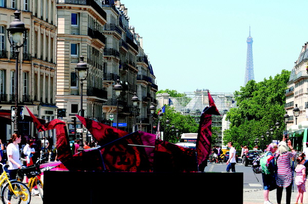 一对造型优美的“中国龙”雕塑作品和一幅带有龙图案的巨型画作6月1日共同亮相巴黎著名的先贤祠广场,拉开了“龙的旅程”大型艺术展的帷幕。据了解,该艺术展将在法国各大城市巡展,计划明年到中国北京的黄花城水长城展出。