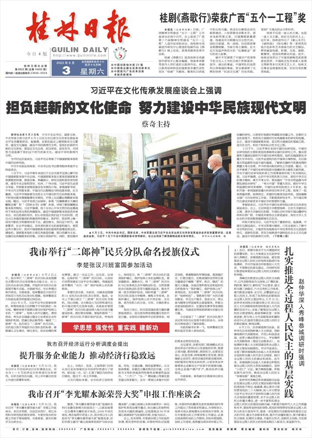 本报讯(记者李思静)日前,广西精神文明建设“五个一工程”工作座谈会在南宁召开,会上宣读了广西第十六届精神文明建设“五个一工程”入选作品表彰决定,由桂林市戏剧创作研究中心报送的桂剧作品《燕歌行》榜上有名,获得戏剧类优秀作品奖。