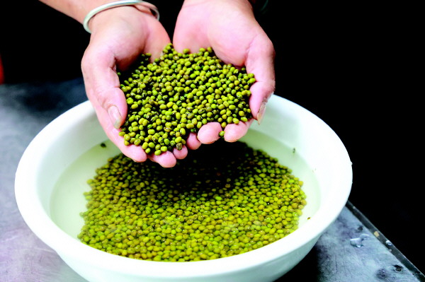 精选的绿豆要提前浸泡。