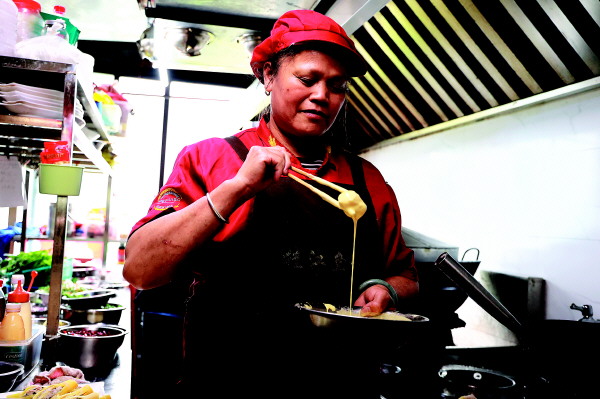 看似简单的玻璃扣,制作过程却繁杂且耗时长久,袁素梅特意邀来两个好姐妹帮忙。精选的绿豆,头一晚就泡好,再用猛火煮20分钟。滤干水分的过程中,除去豆壳,再将绿豆倒进锅内,与适量白砂糖捣成绿豆沙备用。