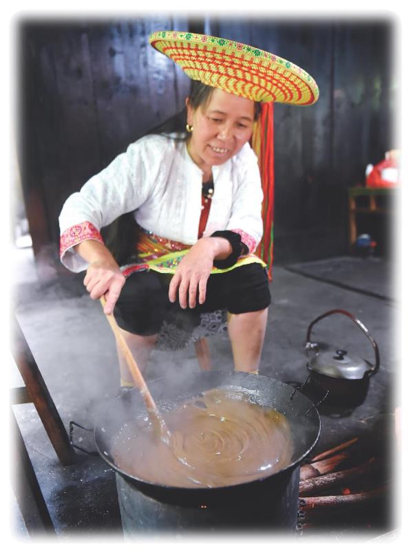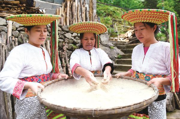 甘甲村地处南山牧场,平均海拔1000米,是花瑶同胞的聚居地。日前,记者来到甘甲村的舒金花家中,她和姐妹们正准备做栎子豆腐“解馋”。