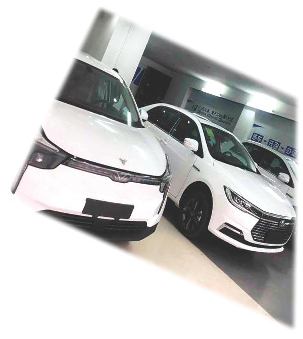 ▲桂林市一汽车销售店铺里的新能源汽车。