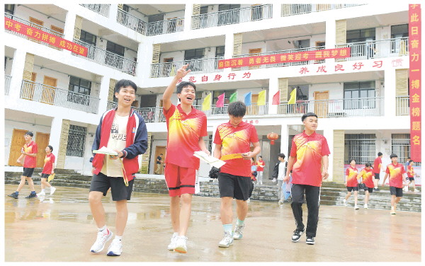 6月24日,在桂林市2023年初中学业水平考试月山初级中学考点,首场考试结束后,考生们满怀信心地从考场中走出。记者李忠波 通讯员韦代波 摄