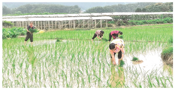 端午前后,正是一季稻种植的最佳时节。连日来,兴安县溶江镇富江村委月塘村的田间地头一派忙碌景象。村民们正在耕田、施肥、扯秧、插秧……连片的水田里,一株株青翠的水稻秧苗扎根在肥沃的田地里,将在秋收时变成沉甸甸的稻谷。