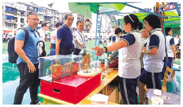 专家组在中山中学体验丰富多彩的校园生活。 (图片由桂林市中山中学提供)