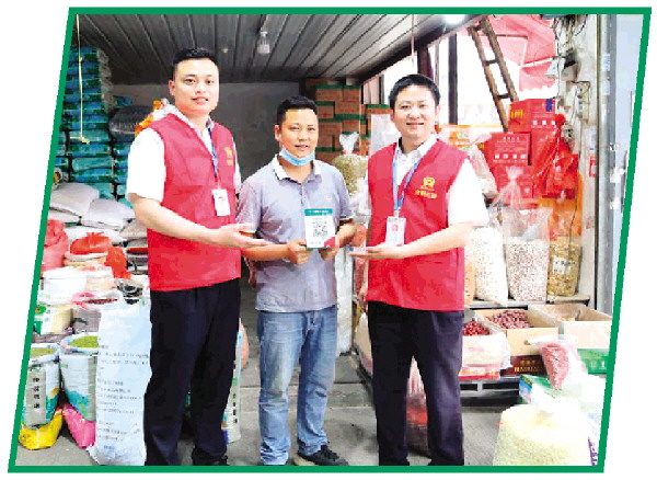 漓江合行金融专员为农产品商户办理扫码支付业务,助力商户经营。