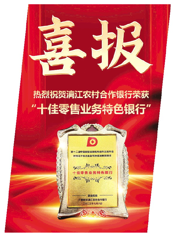 其中广西桂林漓江农村合作银行获评“十佳零售业务特色银行”,漓江合行党委书记、董事长汤耀新代表合行出席年会并领奖和交流。在做好普惠金融服务地方发展领域所获的这一殊荣,是业界对新形势下漓江合行围绕改革转型打造特色“零售银行”,并做好扶农助企惠民工作的充分肯定。
