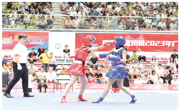 本报讯(记者周文俊)7月19日晚,“中国电建杯”2023年广西青少年武术散打锦标赛在我市灌阳县举办。本次比赛旨在为今年10月中旬在该县承办的第一届全国学生(青年)运动会武术散打比赛做好进一步测试、完善工作。来自全区14个地级市的17支代表队约400名运动员参加比赛。