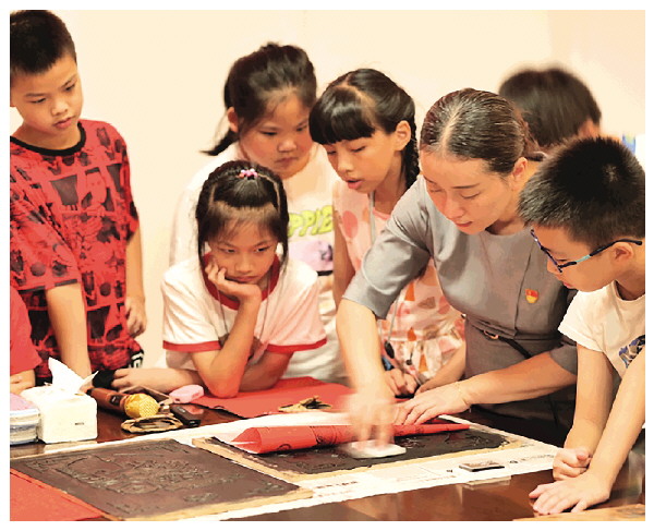 近日,秀峰区甲山街道阳江社区携手桂林博物馆,在社区活动室开设传统文化活动课堂。27名青少年在博物馆讲解员的带领下,学习中国古代科举文化以及桂林七位状元的故事。随后,孩子们兴致盎然地动手拓印“马上高中”版画,学习版画工艺知识。记者韦莎妮娜/摄 通讯员唐有凤/文