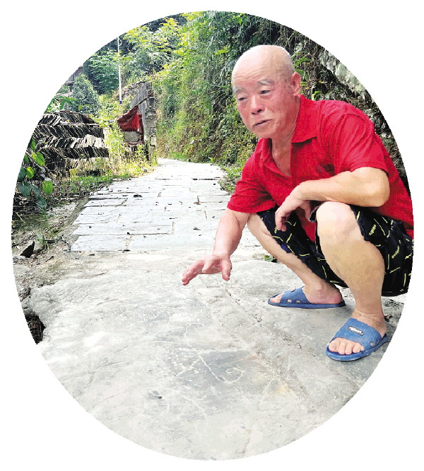村民在向记者讲述“三鲤鱼”石碑的故事。