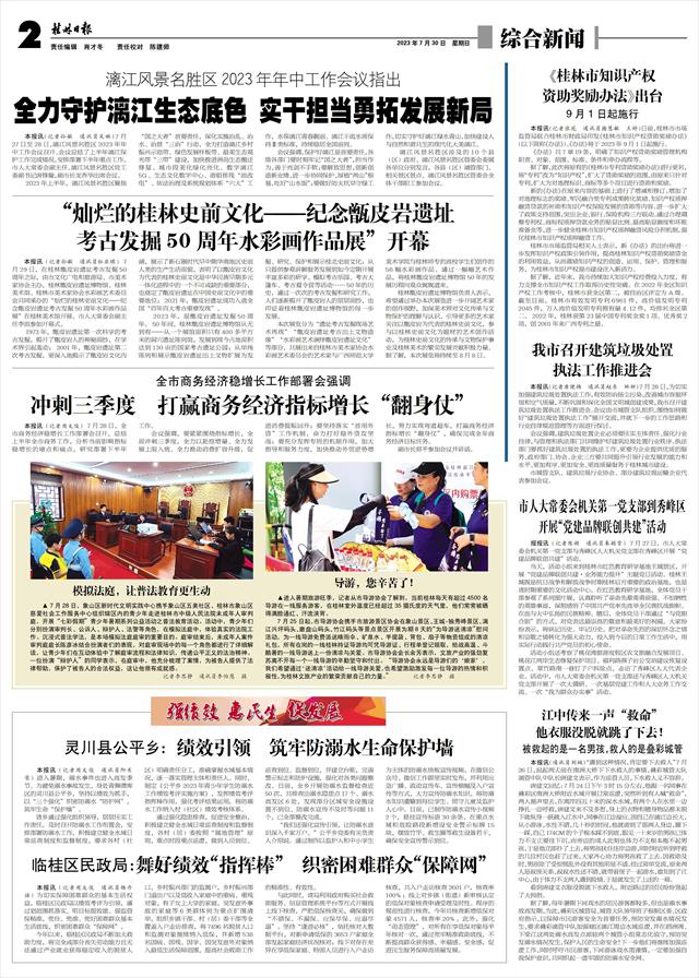 漓江风景名胜区2023年年中工作会议指出 全力守护漓江生态底色 实干担当勇拓发展新局   本报讯(记者孙敏 通讯员吴琳)7月27日至28日,漓江风景名胜区2023年年中工作会议召开。会议总结了上半年漓江保护工作完成情况,安排部署下半年重点工作。市人大常委会副主任、漓江风景名胜区党工委副书记唐修璇,副市长龙杏华出席会议。