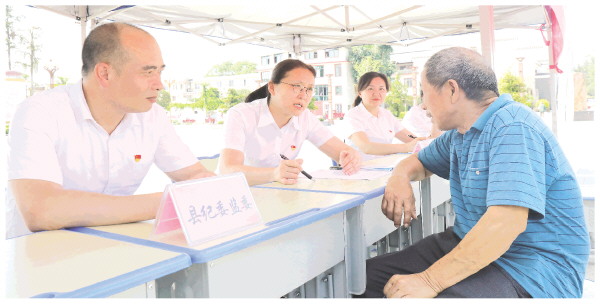 近日,灵川县纪委监委联合潭下镇纪委在圩日开展联合公开大接访活动,面对面听民声、解民忧。图为灵川县纪委监委负责人正在接待来访群众,认真倾听群众诉求。 秦惠鲸竹 摄