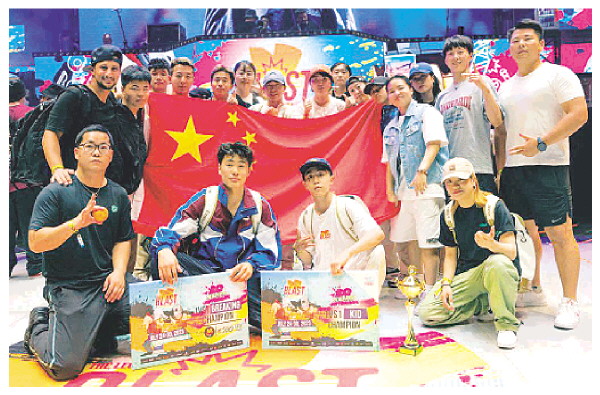 ◤亓祥宇(前左二)在夺冠后的合影。(图片来自中国霹雳舞国家队)