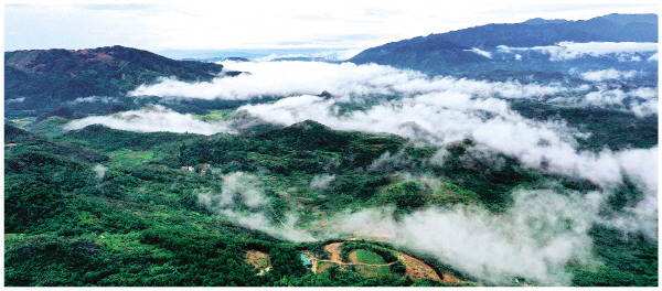 近日,几场秋雨过后,环绕灌阳山城的都庞岭和越城岭云雾缭绕,洁白如雪,远山如黛,城郭村寨如琼楼玉宇,美不胜收。