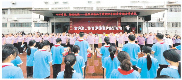 誓言铮铮 筑梦启航——桂林市逸仙中学举行2023年秋季学期开学典礼暨教师宣誓仪式。(图片由桂林市逸仙中学提供)