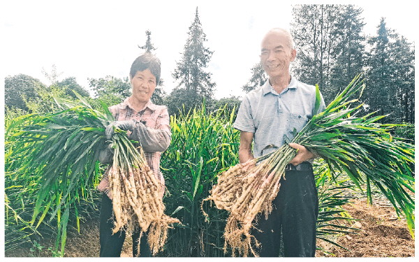 生姜喜获丰收,五通镇浔江村姜农梁重发夫妇笑容灿烂。记者秦丽云 摄