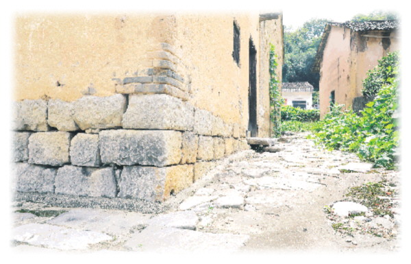 从杜莫寨的北门往东门而行,一株更大的古榕挺立在房屋和巷子旁。居住在古榕旁的村民告诉记者,古榕已有四百余年的历史,树下曾有一块《杜莫寨石城记》碑石,讲述杜莫寨建城墙与抵御盗贼有关。《荔浦县志》记载:永安(蒙山县在明清时期的名称)在万山中,椎髻卉服之流,其性犷悍,与齐民异名,曰瑶、壮。川凡五里,曰“龙回”者,瑶、壮居十之七;为民者吴村、张村,三里寨、杜莫寨而已。四村中,杜莫寨最巨。其地险,其居民二百四十余家,三面阻山,独迤北平衍,贼得驰突为患。万历元年,贼攻吴村、张村急,予提兵深入,贼惧,始奔逸。时大田廖君宪以赣州别驾来守永安,亟询御盗之路,咸谓杜莫旧有堡,其遗址尚存。乃与民谋以城之,臼其事于余,余曰:“是乃永、荔咽喉之地,人民辏集之区,顷缘塞垣崩圮,迭遭寇患。兹欲复旧堡,甃石城,实保障至计,其举之毋缓。”廖君首捐俸十金以为民倡,民以义助者共九十余金,为石城一百八十余丈,高七尺有奇。