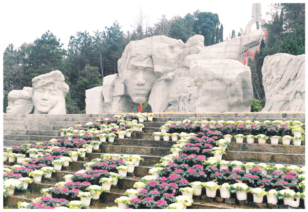 图①:兴安县红军长征突破湘江烈士纪念碑园内的雕塑。 新华社记者陆波岸 摄