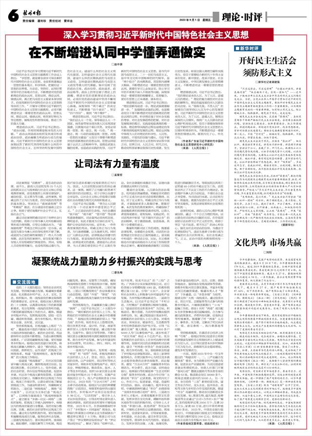 文章指出,要深刻理解“两个结合”的重大意义。在五千多年中华文明深厚基础上开辟和发展中国特色社会主义,把马克思主义基本原理同中国具体实际、同中华优秀传统文化相结合是必由之路。这是我们在探索中国特色社会主义道路中得出的规律性认识。“两个结合”是我们取得成功的最大法宝。第一,“结合”的前提是彼此契合。马克思主义和中华优秀传统文化来源不同,但彼此存在高度的契合性。相互契合才能有机结合。第二,“结合”的结果是互相成就。“第二个结合”让马克思主义成为中国的,中华优秀传统文化成为现代的,让经由“结合”而形成的新文化成为中国式现代化的文化形态。第三,“结合”筑牢了道路根基。中国特色的关键就在于“两个结合”。“第二个结合”让中国特色社会主义道路有了更加宏阔深远的历史纵深,拓展了中国特色社会主义道路的文化根基。中国式现代化是中华民族的旧邦新命,必将推动中华文明重焕荣光。第四,“结合”打开了创新空间。“第二个结合”让我们掌握了思想和文化主动,并有力地作用于道路、理论和制度。更重要的是,“第二个结合”是又一次的思想解放,让我们能够在更广阔的文化空间中,充分运用中华优秀传统文化的宝贵资源,探索面向未来的理论和制度创新。第五,“结合”巩固了文化主体性。文化自信就来自我们的文化主体性。创立新时代中国特色社会主义思想就是这一文化主体性的最有力体现。