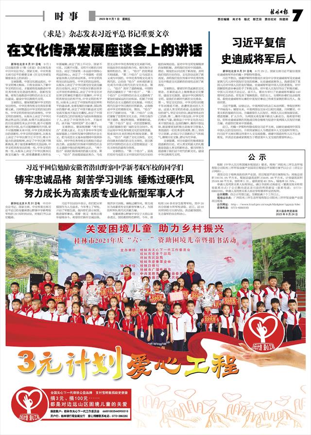 新华社北京8月31日电 9月1日出版的第17期《求是》杂志将发表中共中央总书记、国家主席、中央军委主席习近平的重要文章《在文化传承发展座谈会上的讲话》。