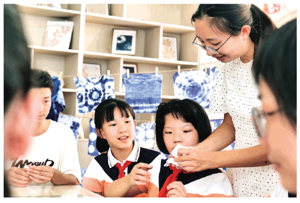 近日,在第39个教师节来临之际,市将军桥小学组织开展了以“‘布’期而遇 感恩有你”为主题的教师节庆祝活动。学生和老师们一起体验扎染艺术。随后学生们将亲手制作的扎染作品作为节日礼物送给老师。记者苏展 摄