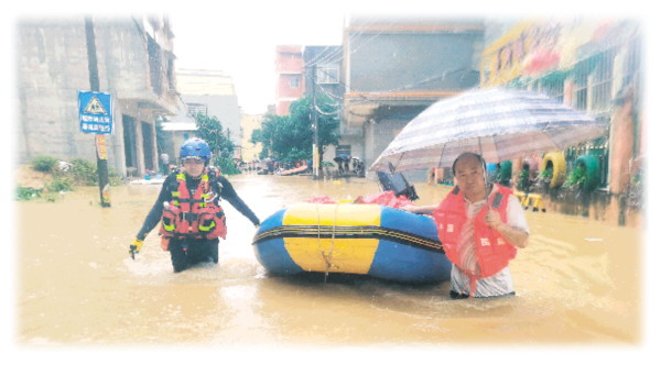 刘定军告诉记者,桂林蓝天救援队接到市应急局的指令,9月11日晚便迅速派出他和涂松林、朱泽忠、覃海恩、邹永岁、陈伟等6名队员连夜驰援,并于9月12日8时40分到达玉林市博白县菱角镇菱角村救援点,与玉林、贺州、钦州、南宁等蓝天救援队伍共42名队员一起,携带橡皮艇12艘,浮力马甲、抛绳包等水域救援装备,共同开展救援工作。