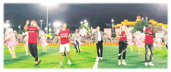 中场休息时,来自我市的演职人员身穿盛装,带来具有浓郁桂林特色的歌舞《我想去桂林》和《多谢了》,用美妙的歌声和优美的舞姿,欢迎全国各地球迷到正在打造中的桂林世界级旅游城市,吃桂林米粉、喝恭城油茶、游桂林山水、踢快乐足球。