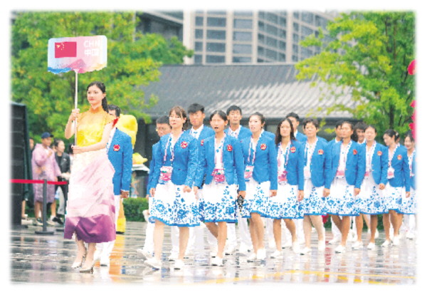 当日,杭州亚运会亚运村开村仪式暨中国体育代表团欢迎仪式在亚运村旗帜广场举行。新华社记者薛宇舸 摄