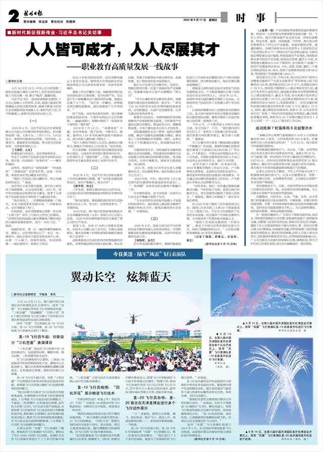 习近平总书记一直高度重视职业教育,十分关心技能人才的培养。目前,我国已建成世界规模最大的职业教育体系,源源不断地为经济社会发展提供技术技能人才。新时代的工匠,在不同赛道上,逐梦闪闪发光的出彩人生。