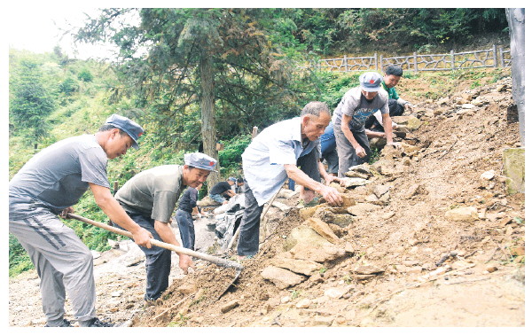近日,龙胜各族自治县马堤乡东升苗寨的村民,自发投工投劳修缮“红军步道”和“红升井”。