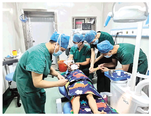 邹红英介绍,为了帮助儿童配合治疗,“打破”惧怕看牙的心理,口腔科与麻醉科手术室合作,开展儿童舒适化口腔治疗。这是一项针对临床治疗中对牙科治疗恐惧症患儿、低龄或智障儿童实施常规口腔诊疗的特色技术项目,其优点是医生可以全麻镇静下、一次治疗中高质高效地完成患儿口腔内所有需要进行的治疗,特别适用于配合难度大,治疗需要量大的患儿,实现无痛舒适化的就医感受。