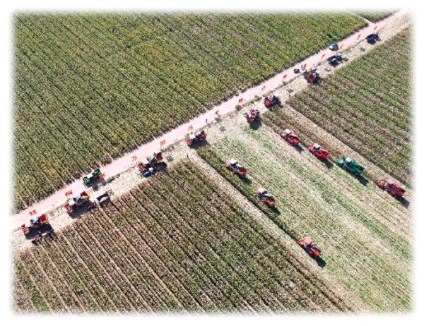 当日,甘肃省张掖市举行玉米机械化收获现场会暨甘州区2023年制种玉米机械化收获开镰启动仪式,庆祝即将到来的第六个中国农民丰收节。张掖市是全国重要的玉米制种基地,玉米制种面积常年稳定在100万亩左右。 新华社记者范培珅 摄