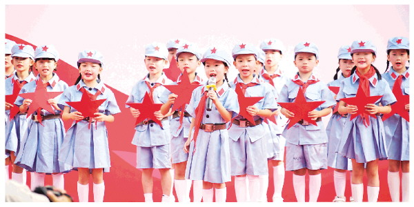 ▲9月26日上午,桂林市芦笛小学开展“童心永向党,我与祖国共成长”国庆文艺汇演活动。图为少先队员用嘹亮的歌声唱出对祖国的热爱。