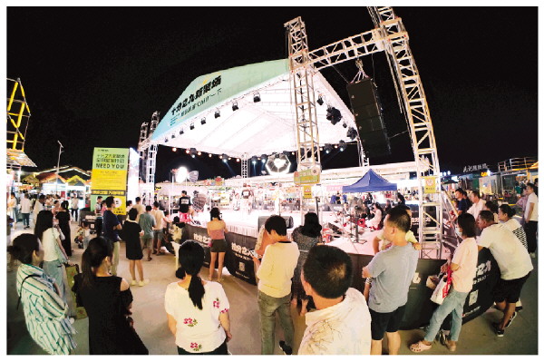 塔山·悦兴部落夜市除了吃喝,每晚还有演出吸引人们。