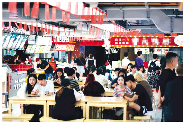国庆黄金周期间,夜晚的市中心商圈客流如潮。