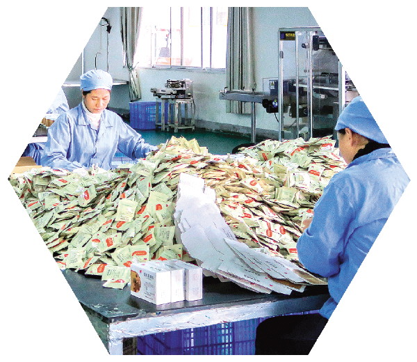 ▲广西禅方药业有限公司包装车间内,工人正在包装芦丁产品。