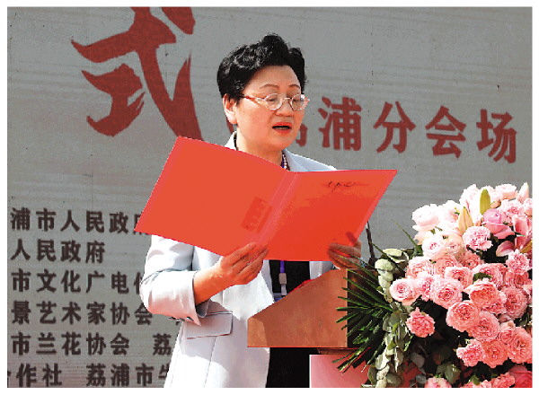 荔浦市人民政府市长唐双喜主持第二届南方花卉苗木交易会暨第四届广西花卉苗木交易会荔浦分会场开幕式。