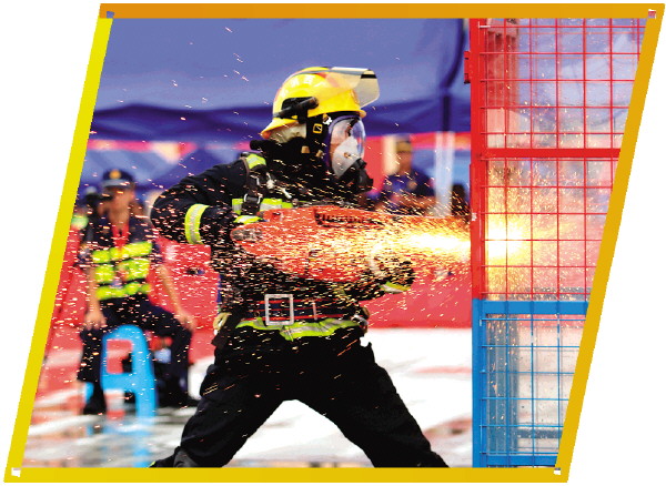 ◥在“壮鹰竞桂”比武竞赛中,桂林市消防救援支队多次获得佳绩。图为纵深灭火项目。